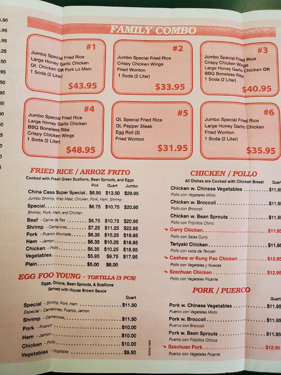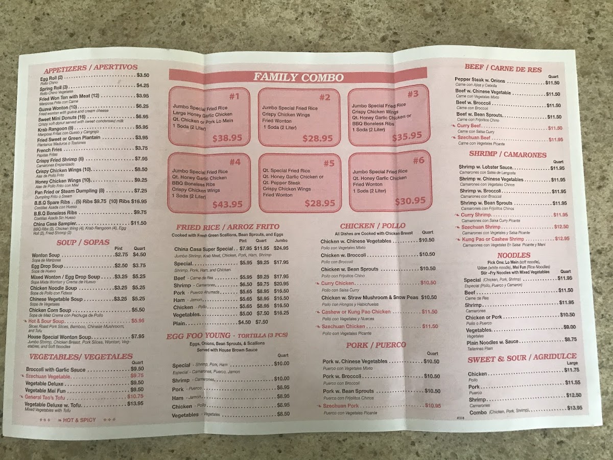 China Casa Menu